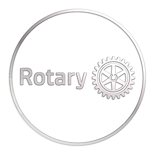 1.75" diameter coin, depicting the 2025-2026 Message on one side, and the Rotary Masterbrand on the reverse. Made from iron, with enamel color fill