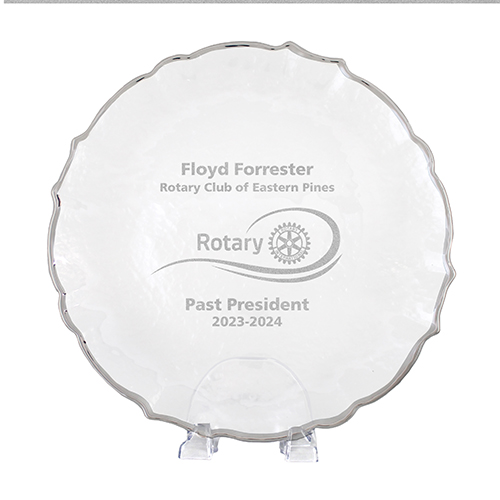 Custom Scallop Silver Rimmed Glass Plate, 13"