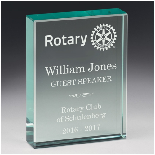 Beveled edged jade glass paperweight with your custom personalization included. 4" x 3" x 3/4"