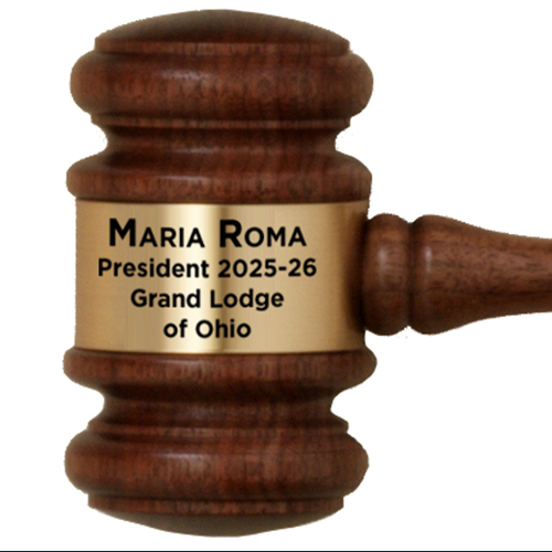 Solid American Walnut Gavel with jeweler's bronze engraving band. 10-1/2" long.